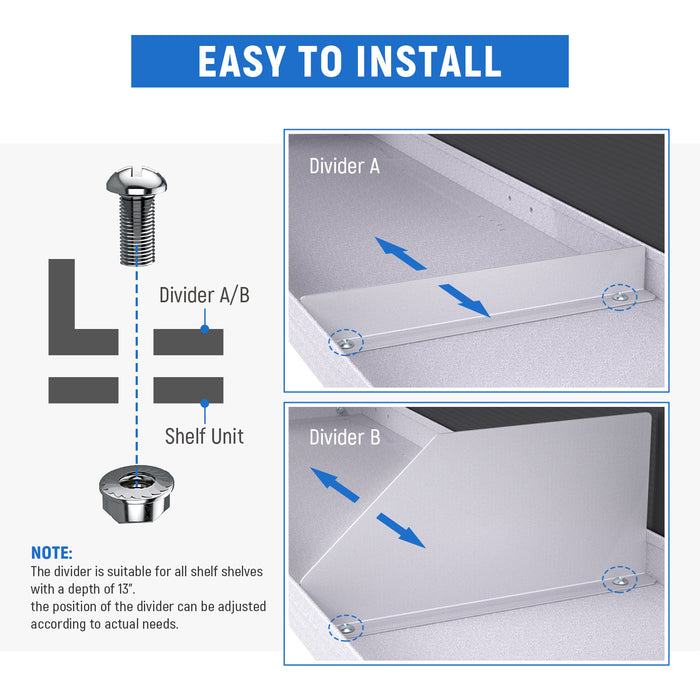 This set includes 3 high-quality and sturdy highten shelf dividers, which are suitable for AA Product 16inch deep van shelving storage
