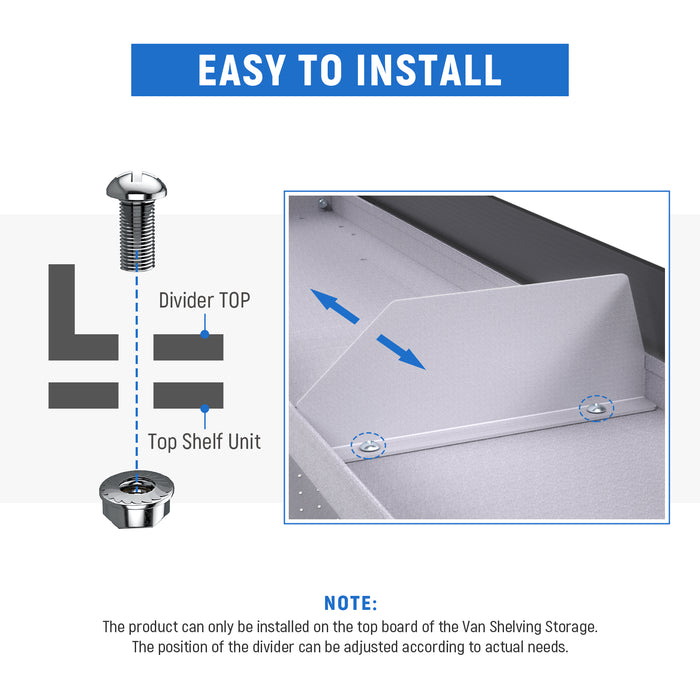 This set includes 3 high-quality and sturdy highten shelf dividers, which are suitable for 16-inch deep van shelving storage